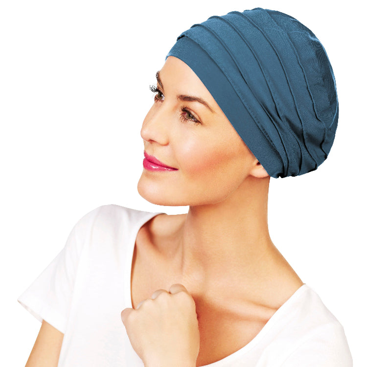 The Christine Headwear range of stylish and practical hair loss turbans are manufactured from a blend of the softest silk, finest cotton blends including Bamboo which are all 100% natural materials to allow sensitive skin to breathe. Christine turbans are fully lined and seam free to avoid irritation to delicate scalps and are a fresh, stylish and comfortable alternative to a wig.