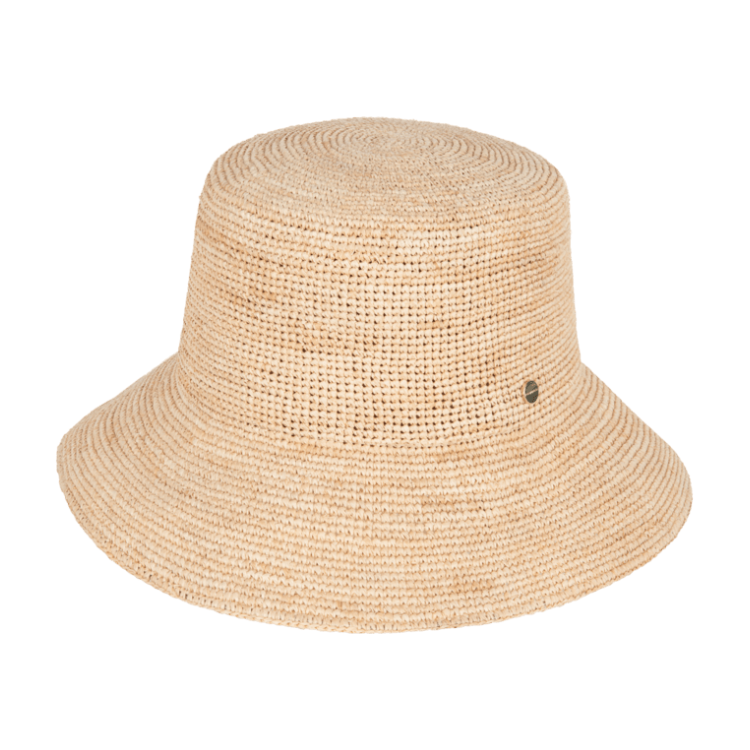 The Kooringal Cue Bucket in natural raffia straw combines traditional craftsmanship with practical design. Handmade from 100% raffia straw, this bucket hat features a distinctive metal-trimmed logo and breathable construction ideal for warm weather wear. The unlined design maximises airflow, while the terry cloth sweatband provides comfort during extended wear. Its packable, crushable nature makes it perfect for travel—simply fold and stow without worry. Whether you're heading to the beach, garden, or outdoor event, this versatile hat delivers both style and functionality.