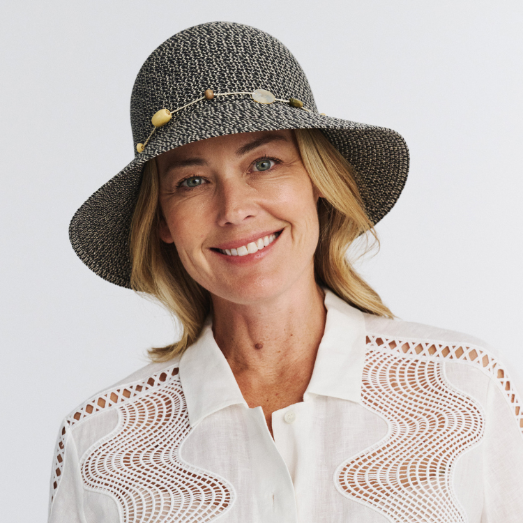 Cancer Council Ladies Bohemian Bucket Hat Charcoal Fleck