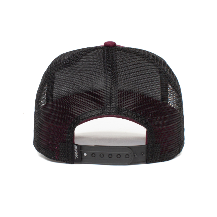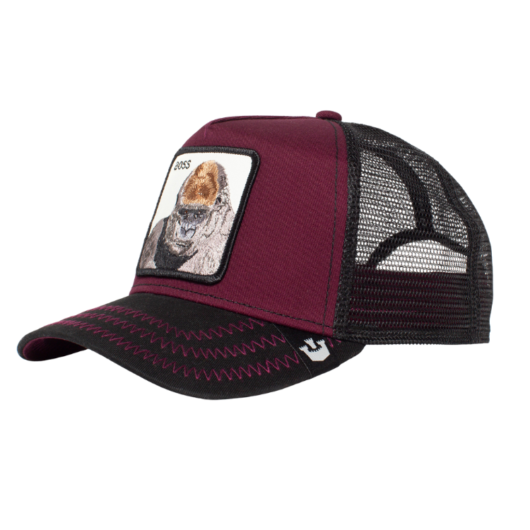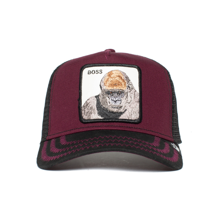 Discover the unique appeal of the Goorin Brothers Boss Trucker - Wine. This premium cap is a necessity for hat aficionados, showcasing a timeless trucker style with a snapback fastener and soft cotton sweatband. The front is embellished with a beautifully embroidered animal patch.