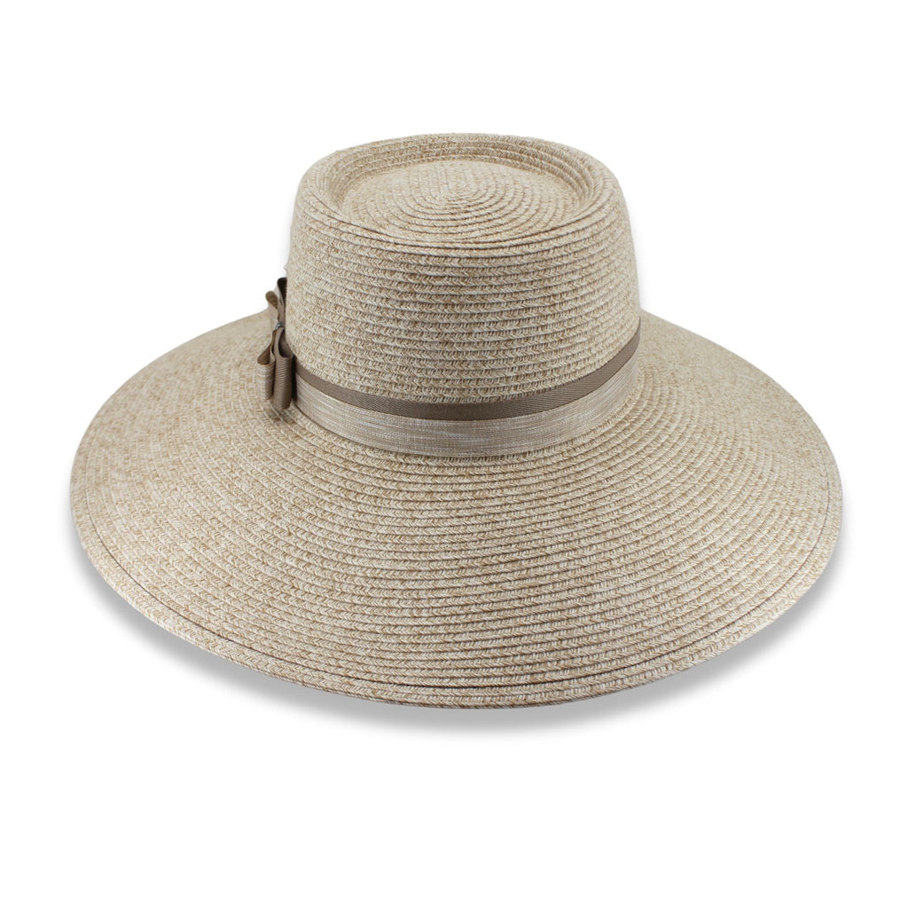 Elegant and versatile, the Tina M Copenhagen Maia Capeline in Natural combines timeless fedora style with modern innovation. Made from crush-resistant UPF50+ Flexibraid®, it offers reliable sun protection with a wide brim and a soft, natural tone. The delicate double ribbon band with a side bow adds refined femininity, while the internal ComfyFit band ensures a secure, comfortable fit throughout the day. Perfect for garden parties or beach outings, this Australian-made hat delivers effortless sophistication and practical comfort for every summer occasion.