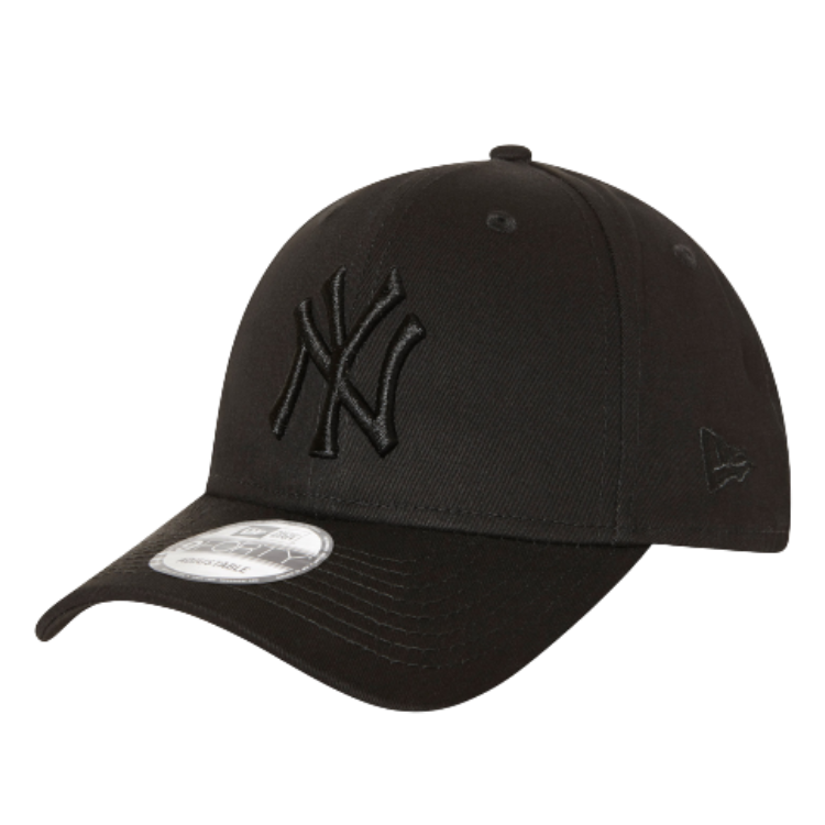 The New York Yankees MLB League Black 9FORTY Cap is a classic, mid crown baseball cap with a pre-curved visor with button at the top.