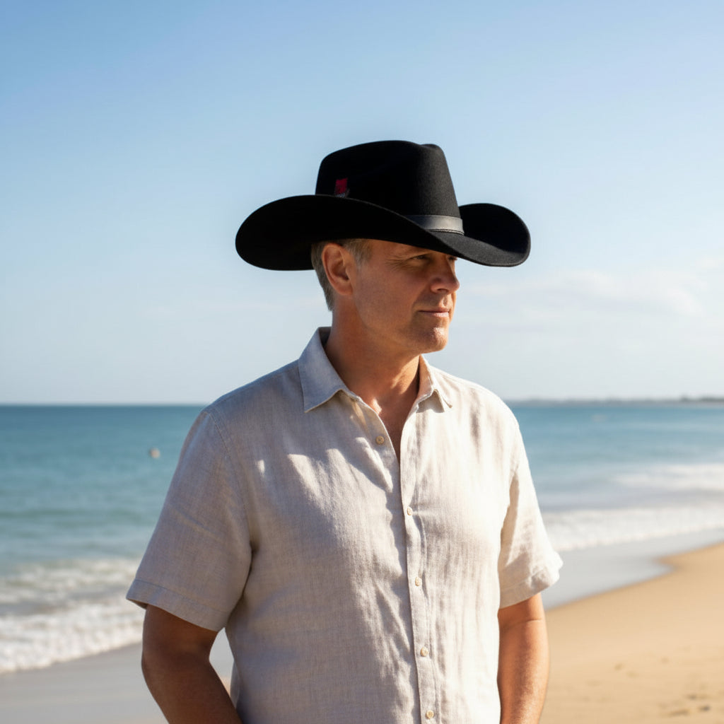 Get in the outback feel with the Outlander from GC Hats. This hat is beautifully crafted from 100% Australian wool and has a rating of UPF50+ sun protection. This hat features a wired brim to shape it either to country style or flat brim look!